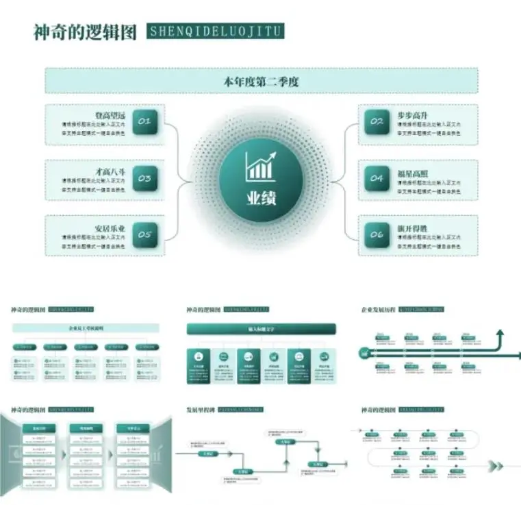 这里为你整理了高端逻辑架构图和逻辑图的PPT模板资源。这些素材通常采用扁平化设计,提供多种逻辑关系的视觉呈现方案,包括但不限于并列、递进、循环和矩阵结构,能帮助你清晰地展示复杂的系统架构或业务流程。